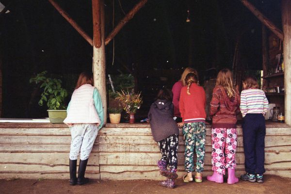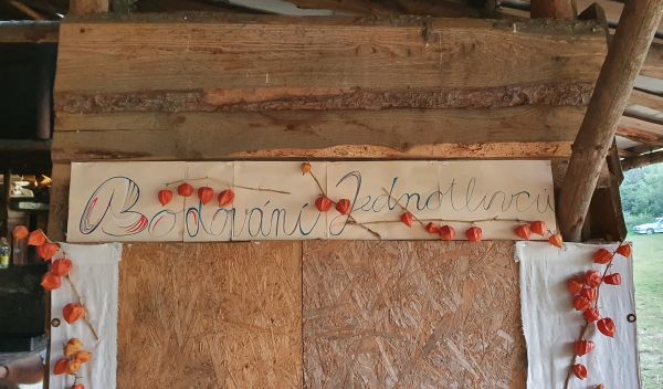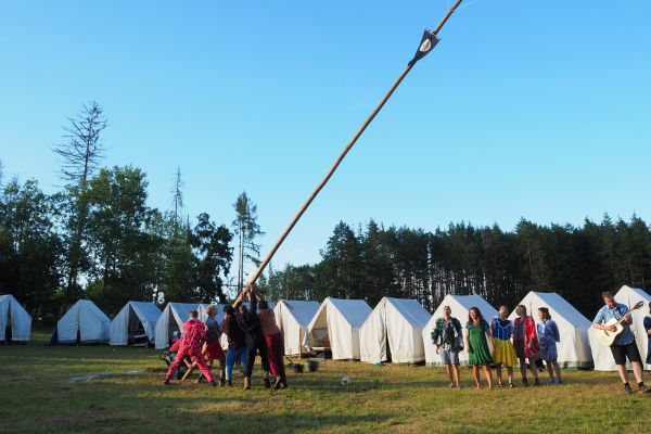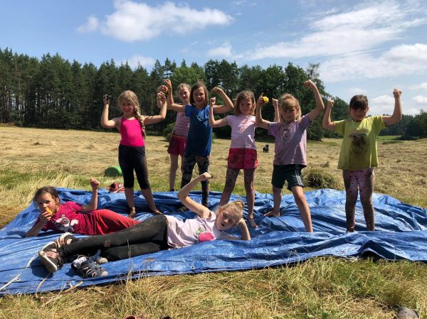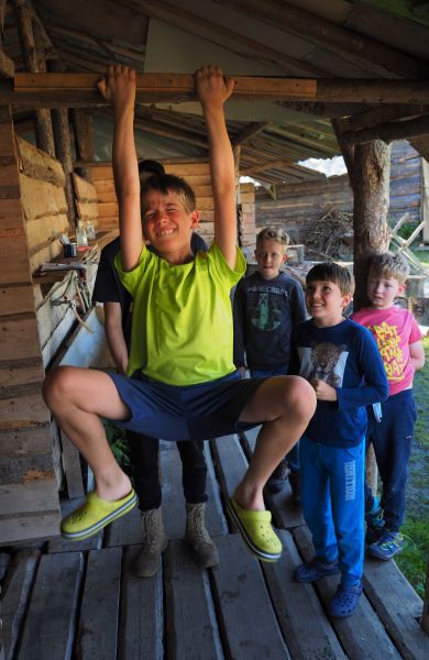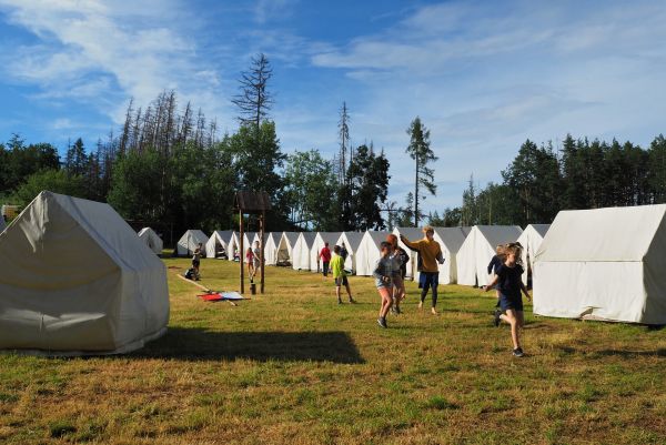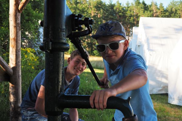 PRÁCE-děti pomáhají s chodem tábora a drobnými pracemi, např. pumpovat pitnou vodu z vlastního vrtu, pomáhat v kuchyni, nosit klacky na dřevo. ZÁBAVA – Baví nás to. A chceme, aby to bavilo všechny.