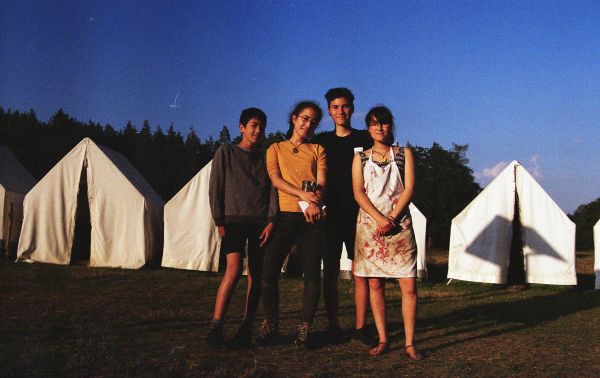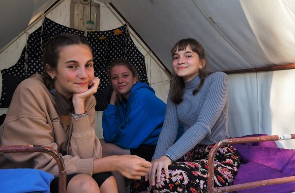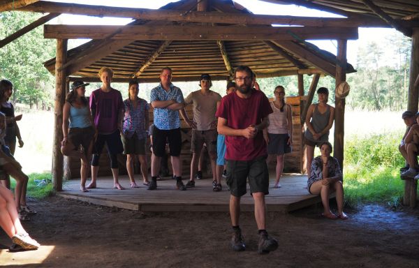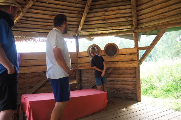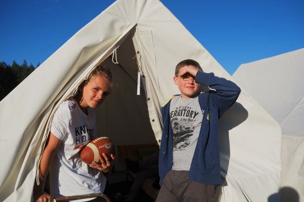 UBYTOVÁNÍ-Spíme ve stanech s podsadou pod spolehlivými plachtami. Všechny stavby jsme si postavili sami ze dřeva a kamenů. Ve 4 sprchách teče teplá voda. Latríny jsou suché v lese. Není to hotel s pěti, ale my bychom neměnili.