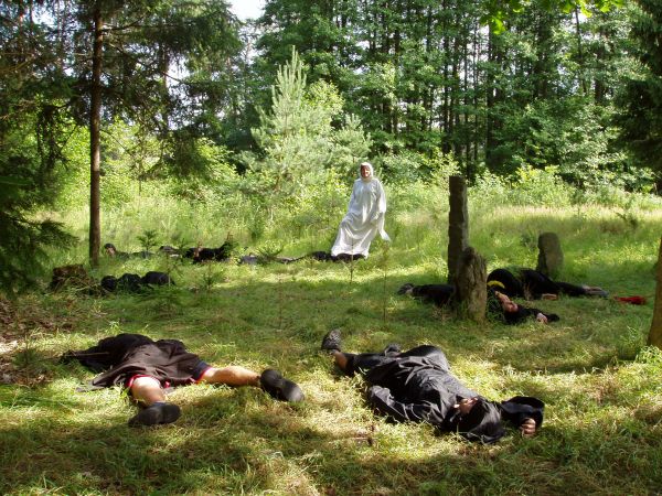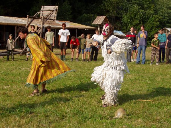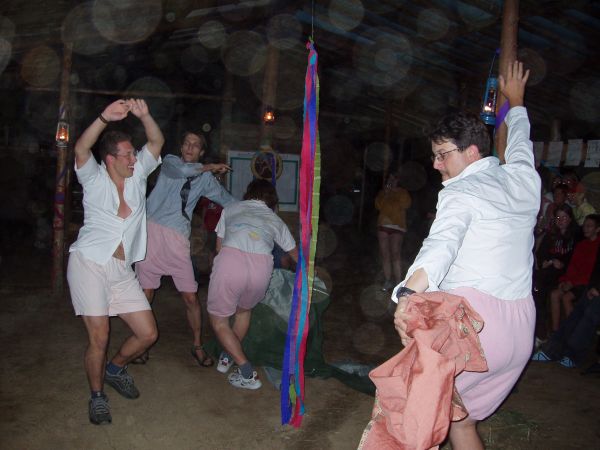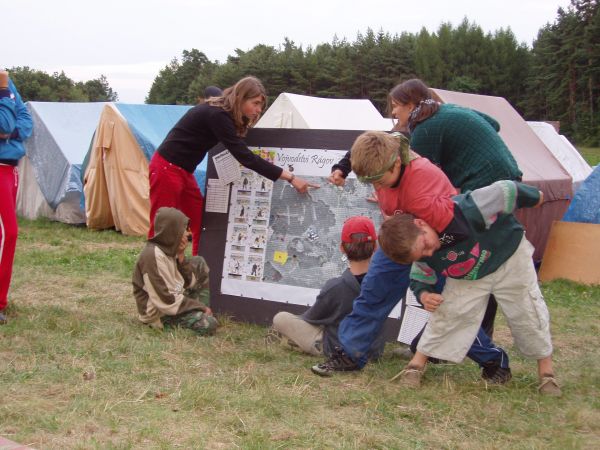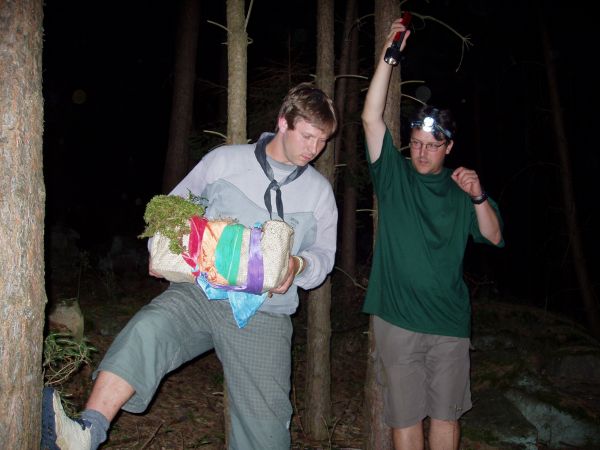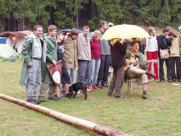 Klouzali jsme se na klouzačce z linolea dolů po louce, posílali jsme balony nahoru k obloze a krom toho a možná hlavně bojovali za Krále Sirotka. Dalo to práci, to máte darebáků – Černé jezdce, Golena, Zlo... Ale klaplo to. Stejně jako svatby v japonském duchu a další věci na táboře. Že jsme to všechno tak nějak zvládli, tak jsme nakonec dostali takovou malou sošku s pěti postavičkami, co jsme je po celý tábor potkávali.