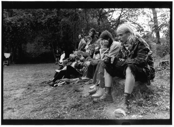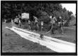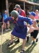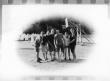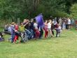 Hrátky s vejci. Závodící jsou seřazeni na ...