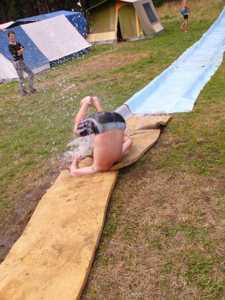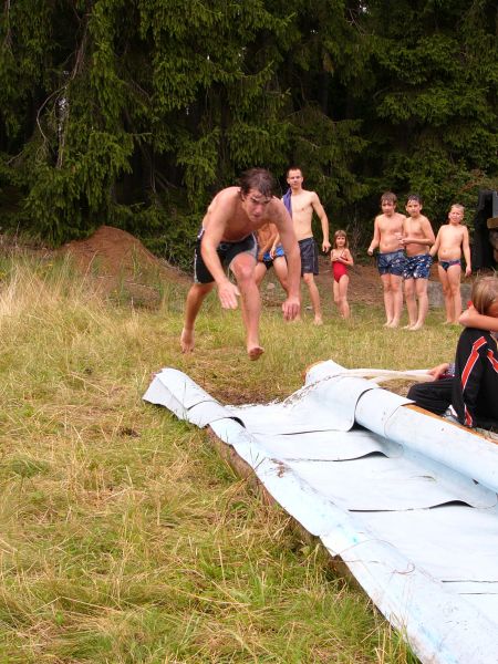 Po roce jsme také vyhráli zápas ve fotbale se sousedním táborem. Navíc poslední, který jsme až do dnešních dnů hráli. Poprvé byla postavena skluzavka, která sklidila velký ohlas. Jezdilo se na ní rekreačně, vyhlídkově, ale také na čas. Kdo byl nejrychlejší? To prozradím. Míra. A ještě nikdo ho nepřekonal.