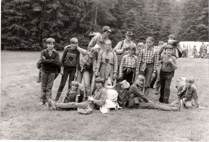 Racek, Píďa, Roman, Marta a Veveřice. Kdo to je? Pět vandráků, s nimiž jsme chodili mezi trampskými osadami a prožívali jejich i svá dobrodružství. Museli jsme projít všemi trampskými osadami a sehnat si dostatečné zásoby. No, občas to docela bolelo – třeba na vyputování, kde nás přepadlo takové počasí, že jsme se museli v noční bouřce vracet domů a docela jsme se báli. Nás se zase bál sousední tábor, který jsme dvakrát porazili ve fotbale.